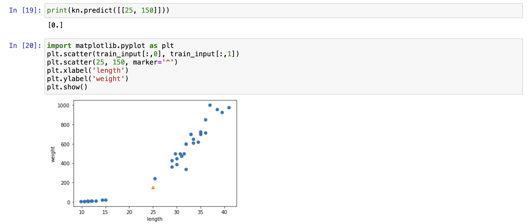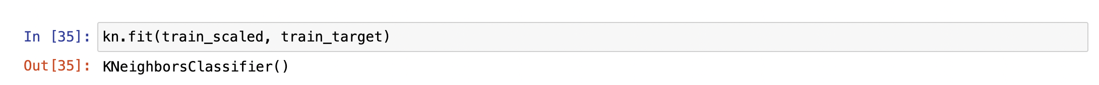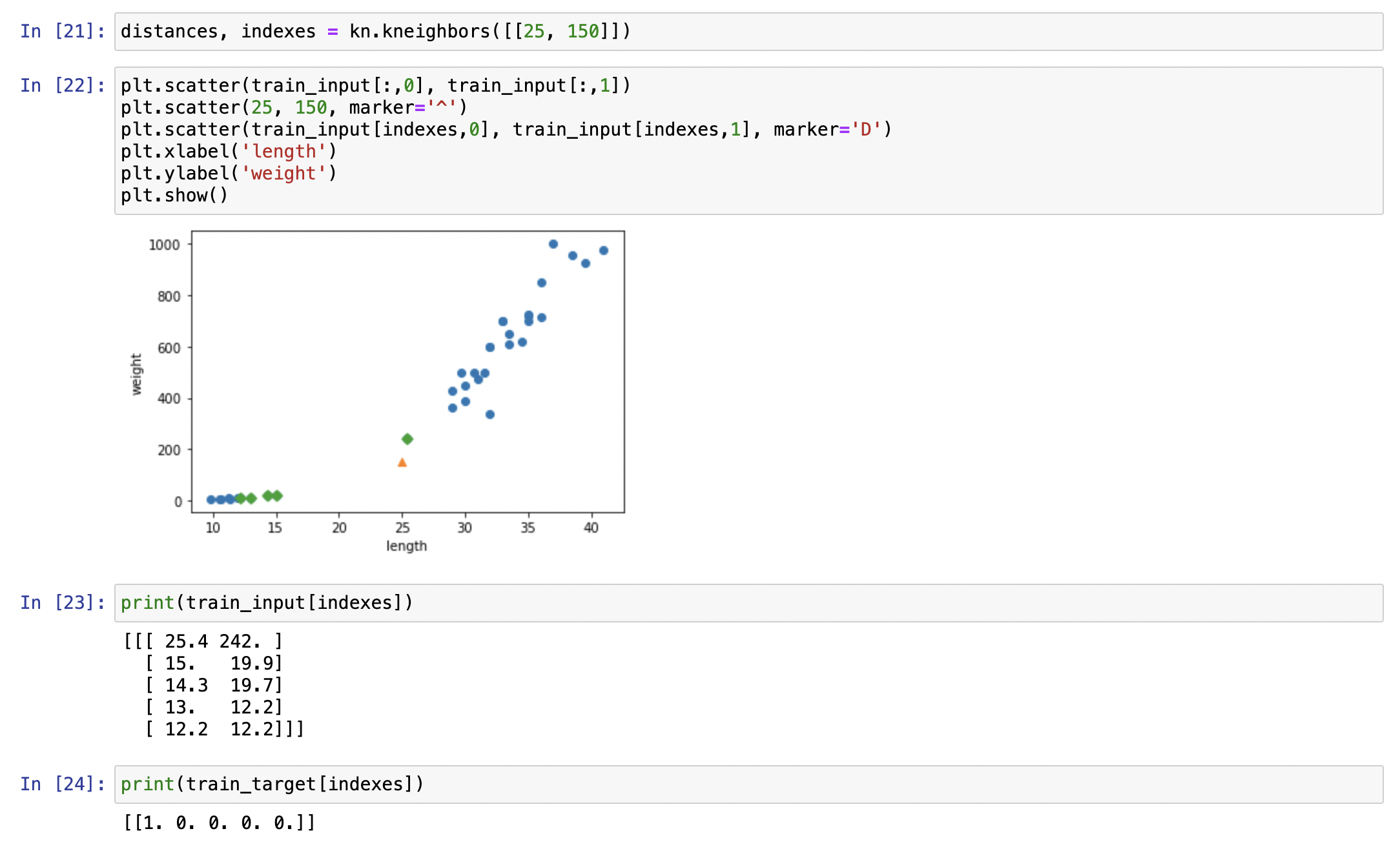 ✔︎ 'kneighbors()' 메소드를 이용하여 가장 가까운 이웃을 찾는다.(기본값 = 5)
