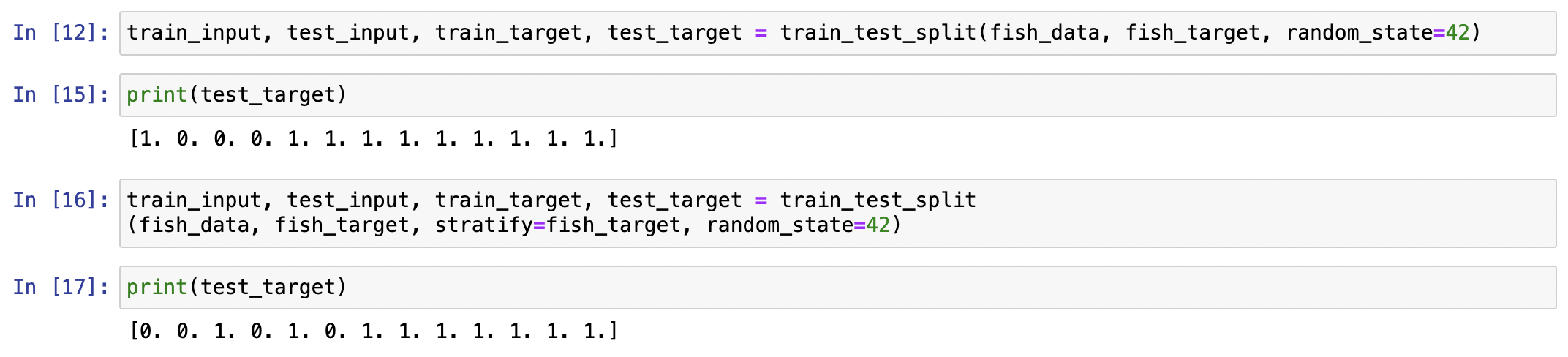 🟣 사이킷런으로 훈련 세트와 테스트 세트 나누기 - 'train_test_split()'함수