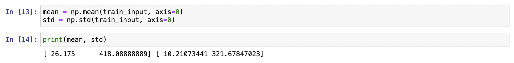 ✔︎ 특성마다 값의 스케일이 다르므로 평균과 표준편차는 각 특성별로 계산해야 한다.