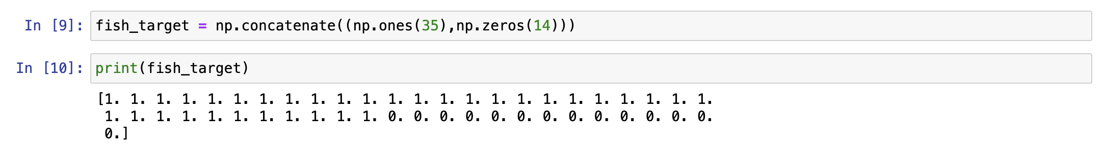 ✔︎ 그 결과 초록색 다이아 모양을 타깃 데이터로 1이 하나 0이 네개인 것을 확인 가능하다.