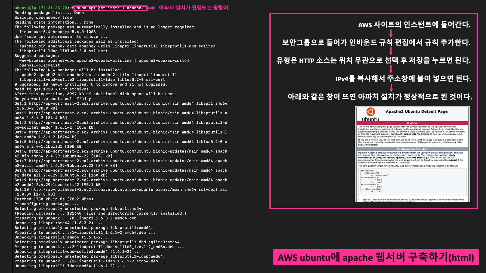 이번 수업에서는 apache 웹서버를 구축하는 부분에서 어려움이 있었다. 그래서 교수님께 도움을 요청하여 해결을 할 수 있었던 것 같다. 하지만 지금 작성하고 있는 글을 쓰면서도 아직 헷갈리는 부분이 남아있다. 이 글을 씀과 동시에 내가 잘 알지 못하는 것을 알게 되는 것 같다. 그래서 이 글을 끝마치고 한번 더 헷갈리는 부분을 시도해봐야겠다는 생각을 들게 해준다.