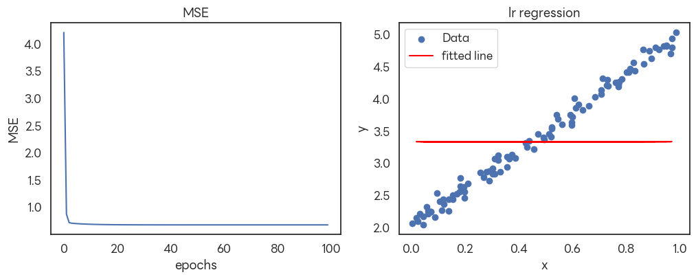 제가 만든 모델은 경사하강법으로 w와 b를 업데이트하는데, 초기값이 안 좋거나 학습률이 너무 작으면 제대로 수렴하지 않아서 엉뚱한 예측선을 그렸던 것이었습니다.
