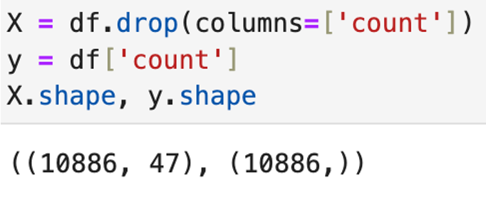 - X : 10886개의 샘플 개수 / 47개의 특성(2D)