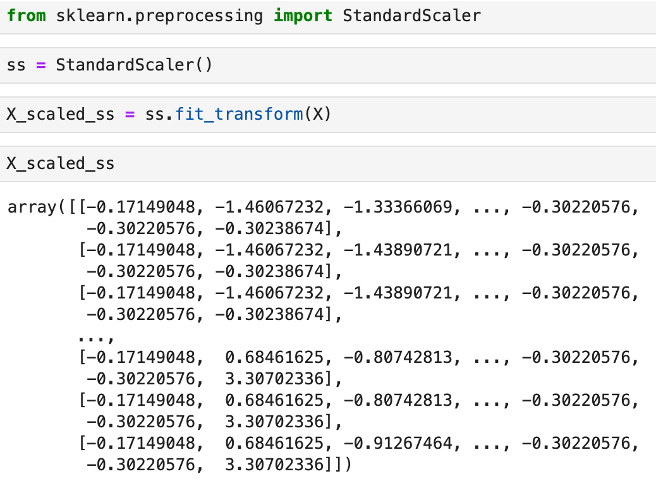 : 표준화는 sklearn.preprocessing의 StandardScaler를 사용하여 수행한다.