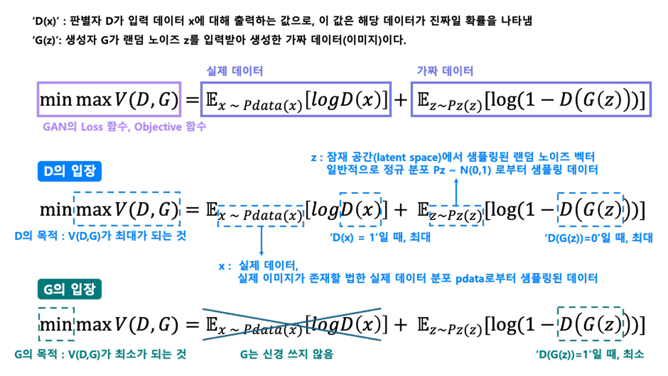 - 판별자(Discriminator) : 입력된 데이터가 실제 데이터인지 생성된 데이터인지를 구분하려고 한다.